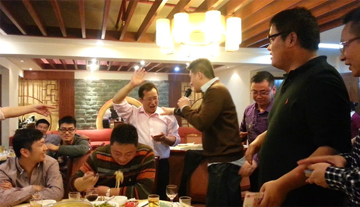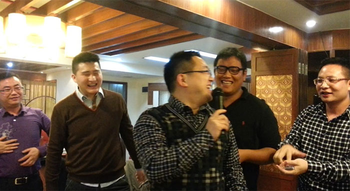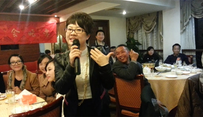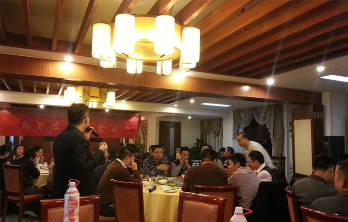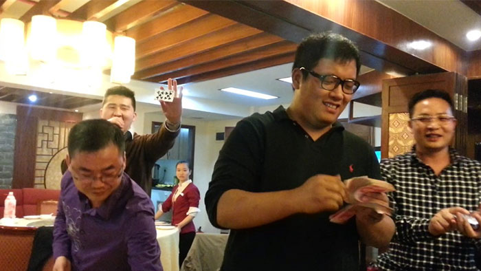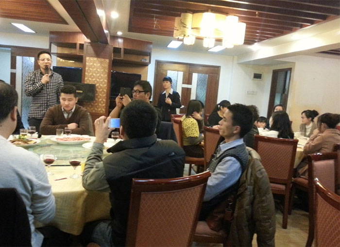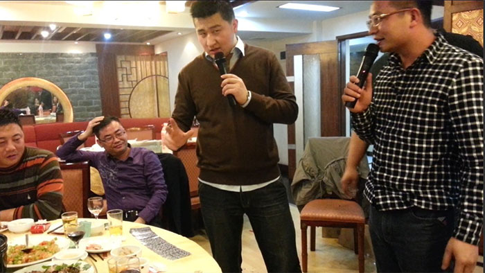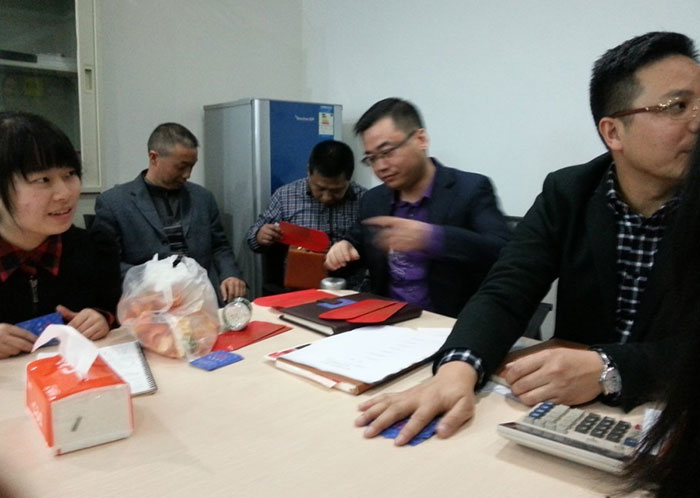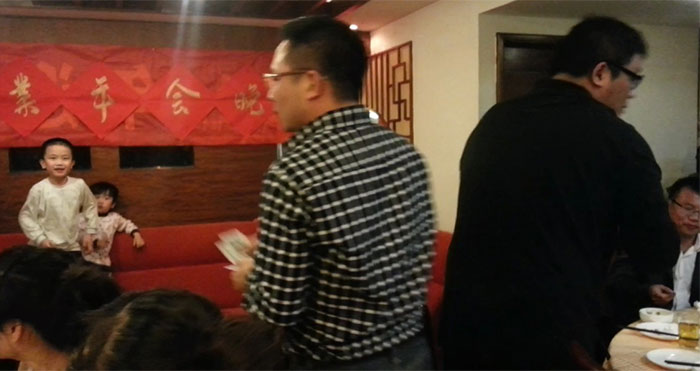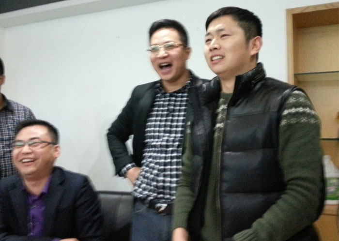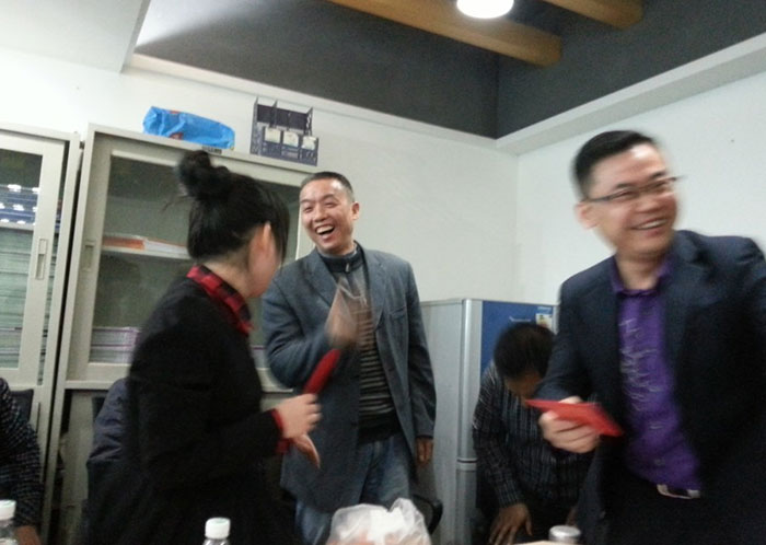 早上的会议上陈总跟孙总发表了热情洋溢的讲话,总结了2012年销售业绩跟财务状况,明确了2013年公司的发展方向,各种政策。给全体员工提供一个更大的舞台,让韩彩每一位成员都能更好的描绘自己的人生蓝图。会议结束后最令人期待、最激动人心游戏抽奖环节终于到来了,游戏规则是这样子的有两副扑克牌,两副扑克牌都挑出跟我们韩彩员工一样的数量,其中有一副发到我们每一位的手里,另外有一副由陈总或者孙总洗牌,然后抽出其中的一张牌,抽中的那一张牌就为中奖的那一位。每人都做好了心理准备,紧握手中的“抽奖卷”,默祈大彩头降临自己。幸运之神会眷顾我们之中的谁呢?抽呀抽呀,四等奖以及三等奖得奖主六名得主由销售部跟财务部全包了,而二等奖三千元现金大奖则由行政部雷经理以及广州分公司的老杨抽得,那么大奖由谁得呢,哈哈,大奖就是由来自我们广州分公司的老杨的儿子小杨夺得,哈哈恭喜这几位得奖的同事,那下面让我们来回顾当时欢乐激动的场景吧。